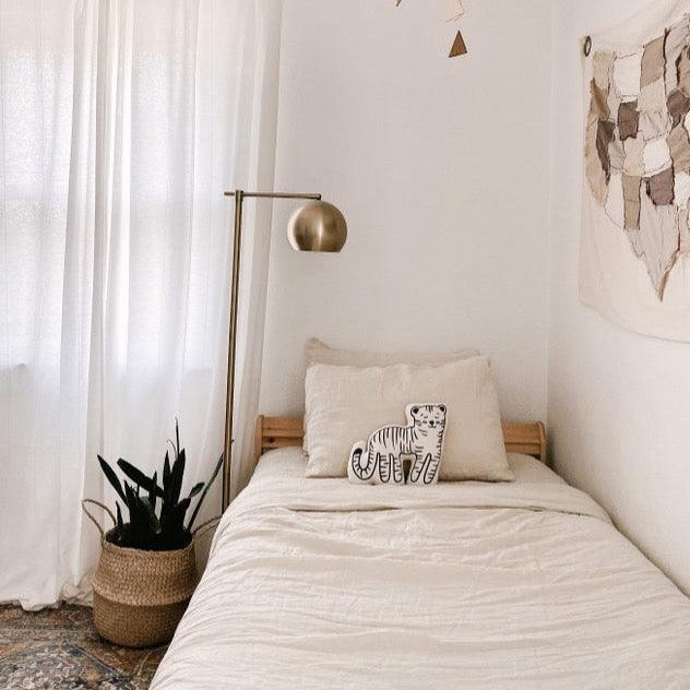 This tiger is a great addition to any kid's space who tends to live on the wild side. Sewn and screen printed by hand on natural canvas by local artisans.